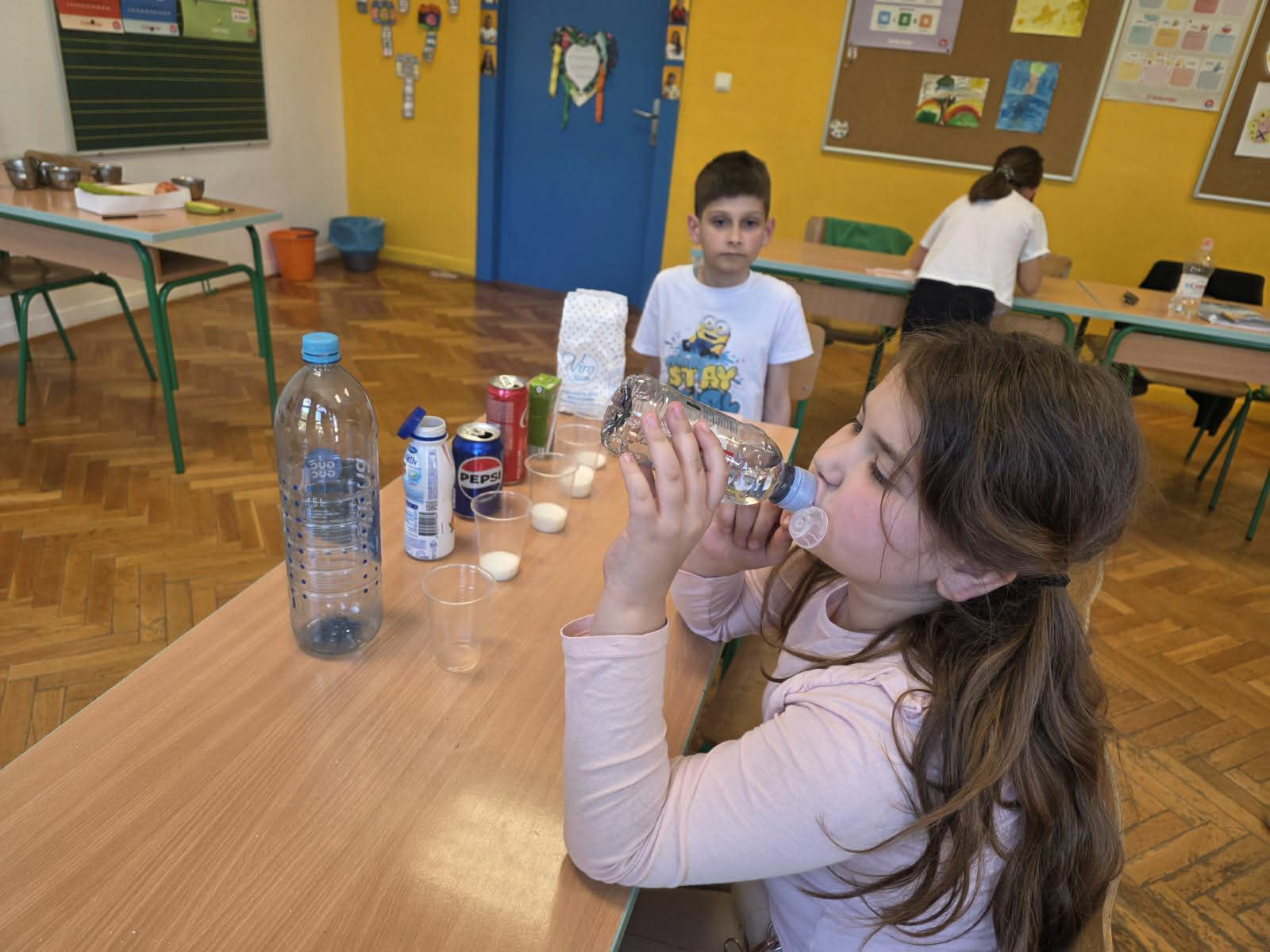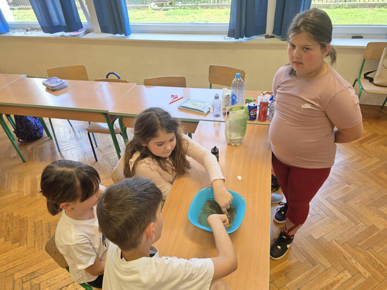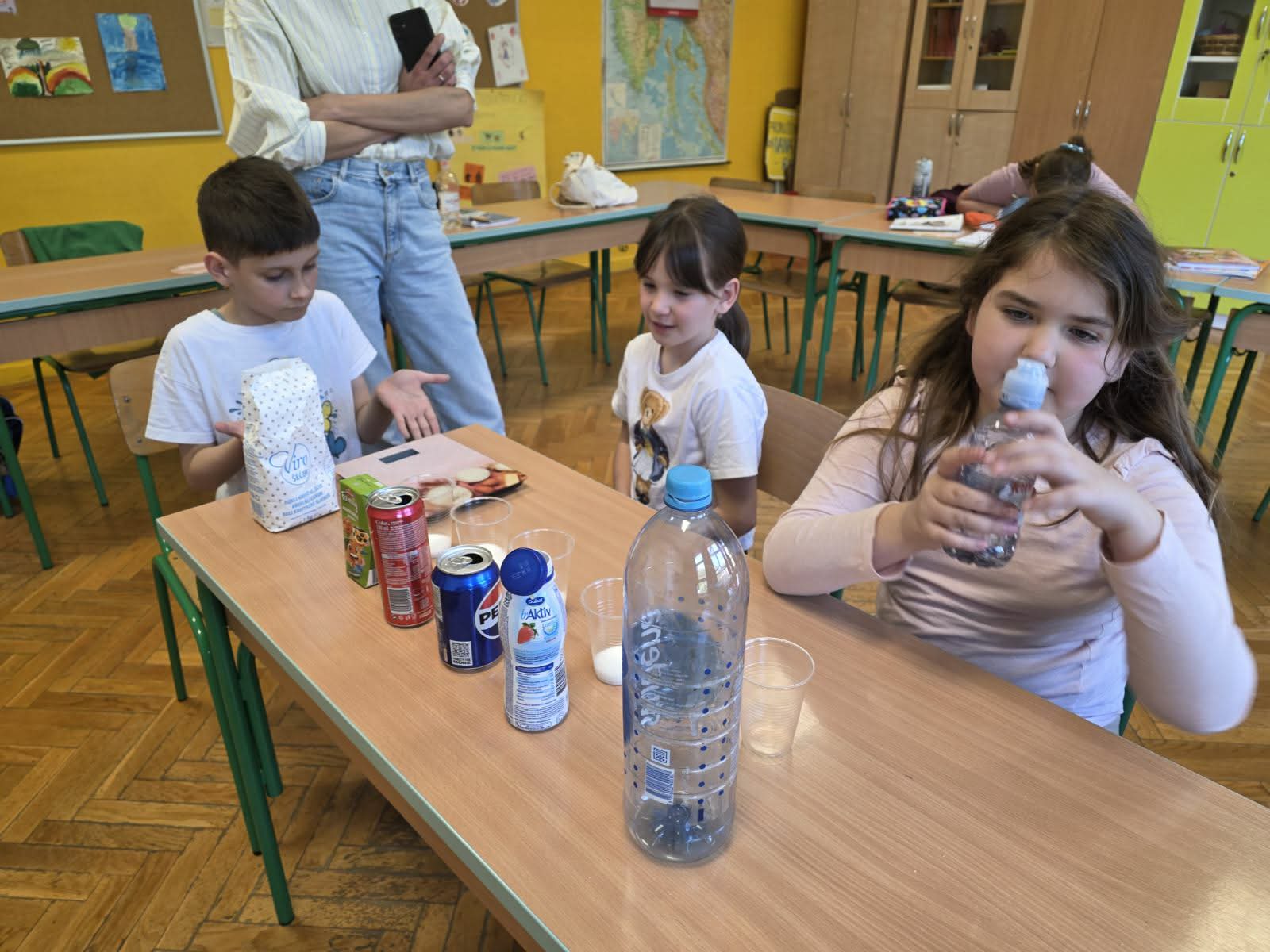 Učenici Produženog  boravka su različitim aktivnostima obilježili Dan zdravlja. Nakon odigrane igre vješala i oluje ideja, uslijedila je radionica u sklopu projekta “Pij zdravo, jedi pravo”. Učenici su zauzeli uloge malih detektiva šećera pa su na temelju etiketa različitih ambalaža popularnih pića (Coca-cola, Pepsi, sok, voćni jogurt i voda) u prozirne čaše sipali onoliko šećera koliko ga se zaista nalazi u piću. Vizualni prikaz gomile šećera u sokovima naspram prazne čaše šećera ispred vode, natjerao ih je na razmišljanje te ih potaknuo da češće biraju vodu. Uslijedio je eksperiment “Bježi, bacile!” koji ih je podsjetio na važnost higijene ruku. U duboki smo tanjur ulili vodu i mljeveni crni papar koji predstavlja bakterije. Učenici su tada močili prstiće u vodu – bacili se nisu micali, već su se ljepili po njihovim prstićima. Zatim je svaki učenik na prst stavio sapun i ponovio postupak. Bakterije su se, odnosno papar, u sekundi razbježale prema rubovima tanjura. Time su shvatili da sapun nije dosadan, već moćan alat u održavanju higijene. Posljednja aktivnost bila je “Poligon zdravih izazova”. Radi se o fizičkoj aktivnosti gdje je učenicima, umjesto klasičnog vježbanja, stvorena priča. Svaka postaja na poligonu ima svoj naziv. Tako su učenici trčali mostom ravnoteže, provlačili se kroz tunel vitamina, brali jabuke te ih potom bacali u košaru.