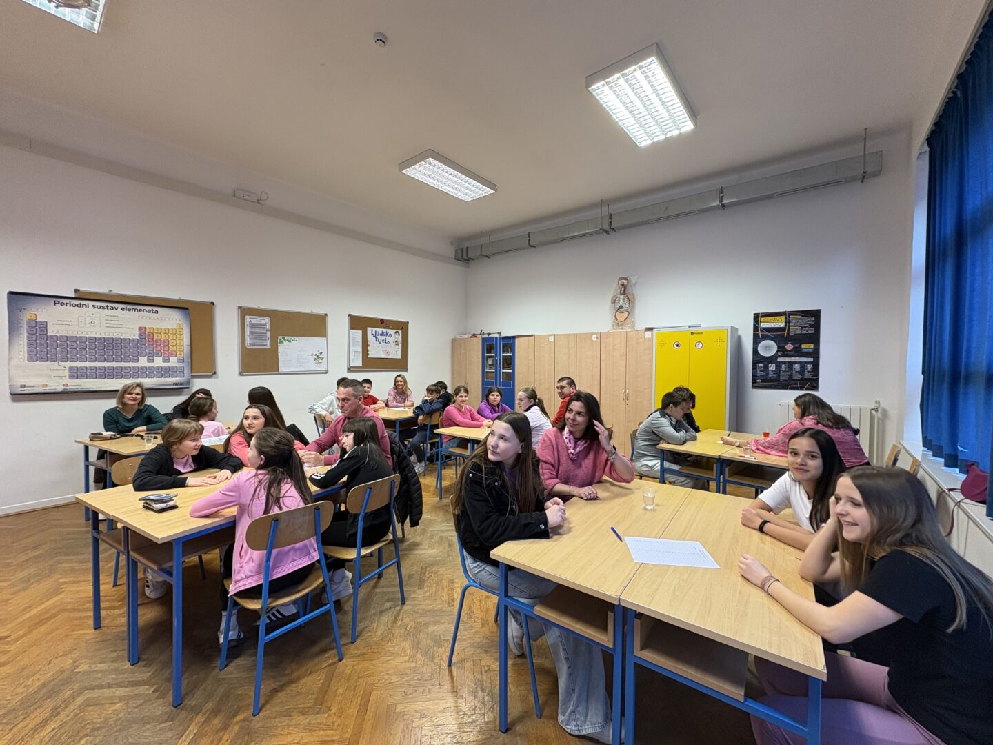 U kvizu je sudjelovalo šest timova sastavljenih od učenika od petog do osmog razreda, a svaka je ekipa imala i jednog roditelja ili učitelja. Upravo je ta međugeneracijska suradnja dala događaju posebnu vrijednost – spoj znatiželje i brzine mladih s iskustvom odraslih stvorio je izvrsnu atmosferu, potaknuo timski duh i otvorio prostor za brojne simpatične rasprave oko odgovora.