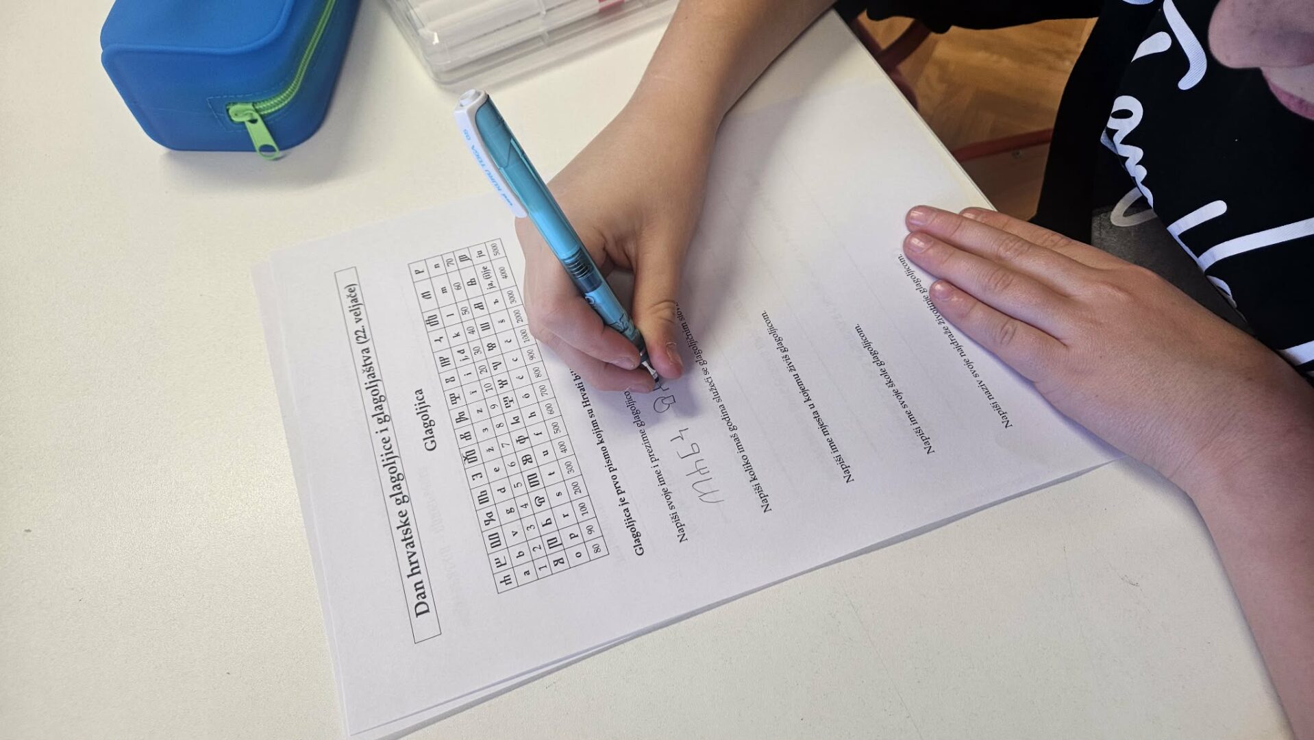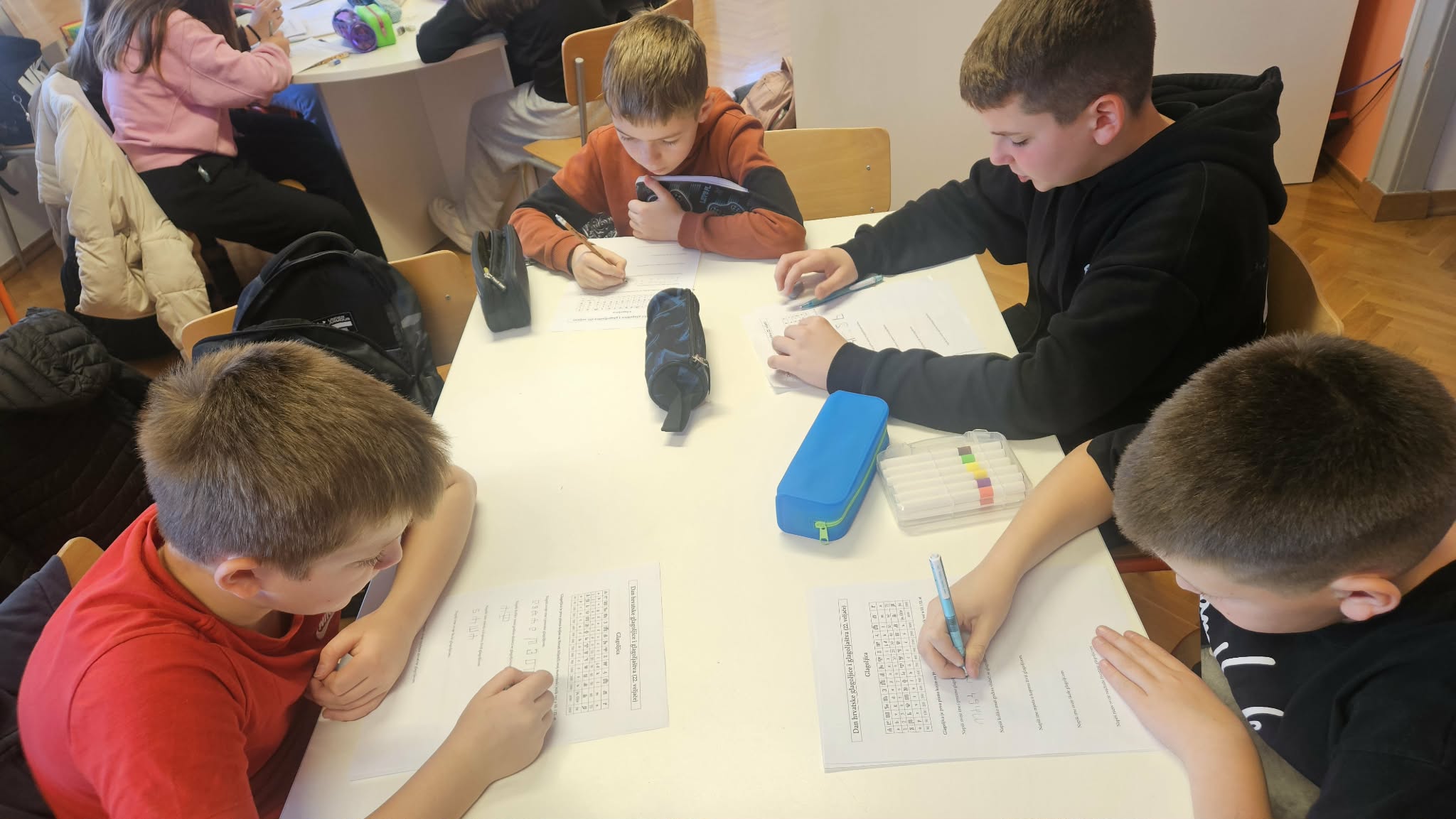 U nastavku su učenici upoznali različite informacijske izvore koji nam pomažu u pravilnom korištenju jezika, poput rječnika, pravopisa i jezičnih priručnika. Na radionici se govorilo i o povijesti hrvatskoga jezika te o njegovu razvoju kroz stoljeća. Učenici su kroz razgovor i primjere saznali zanimljive činjenice o jeziku kojim svakodnevno govore, a zatim su i sami rješavali zanimljive radne listiće o glagoljici i jeziku, rješavali križaljke, ispravljali pogrješke, tražili jezično blago, rješavali kviz.