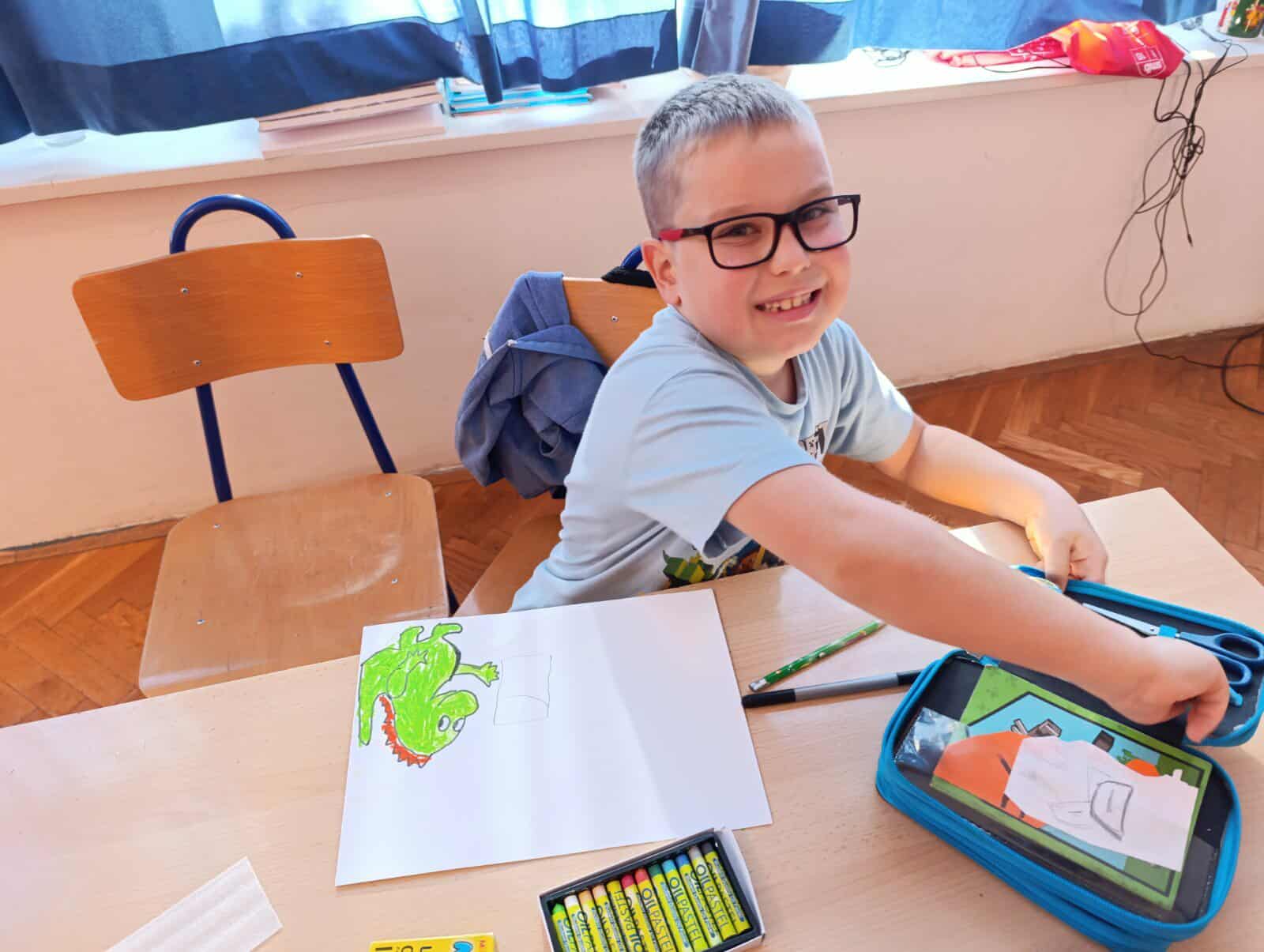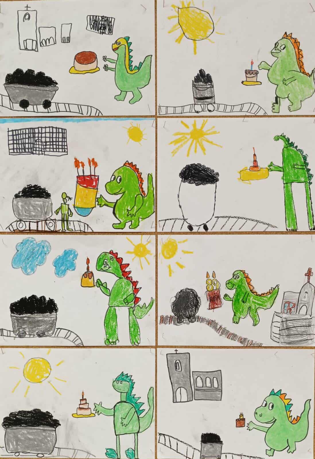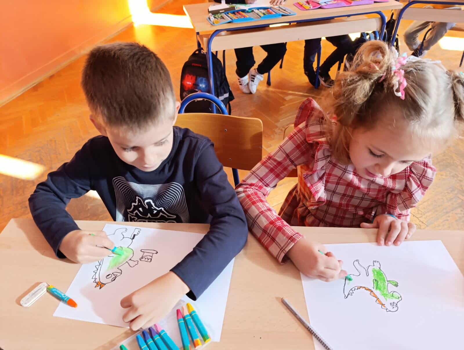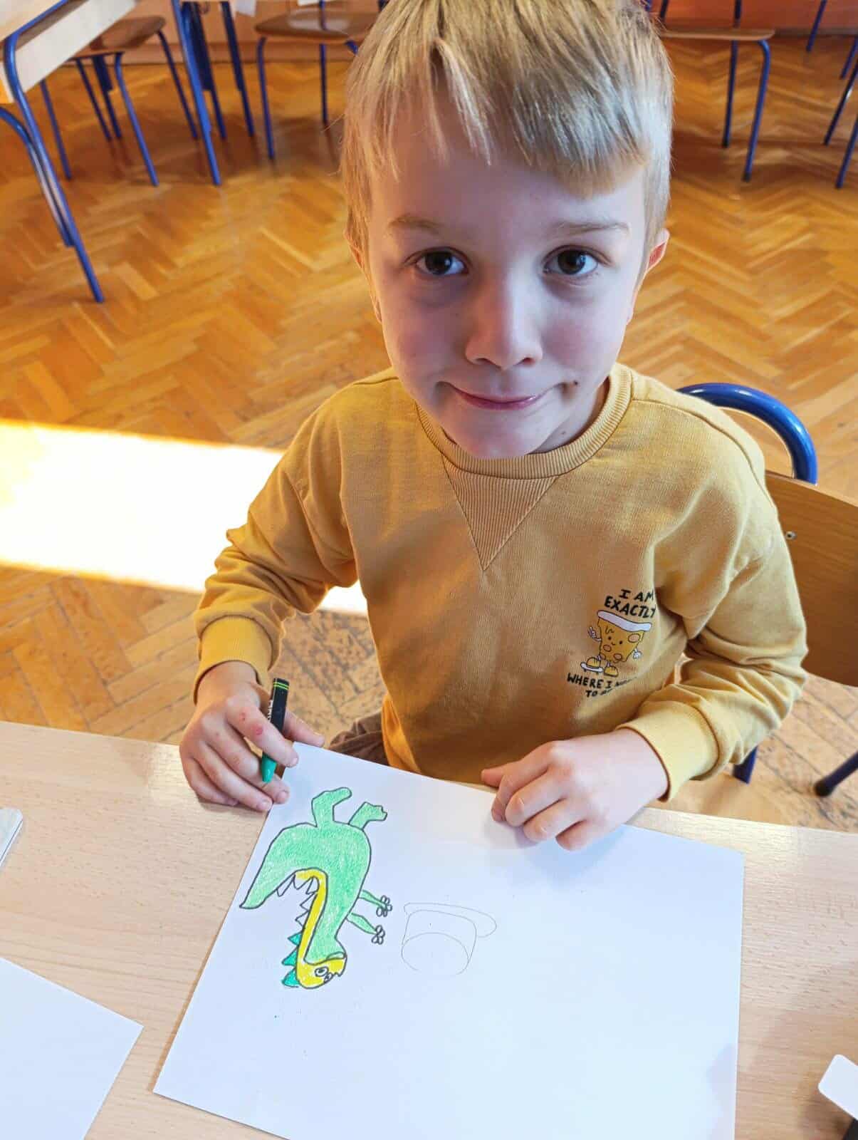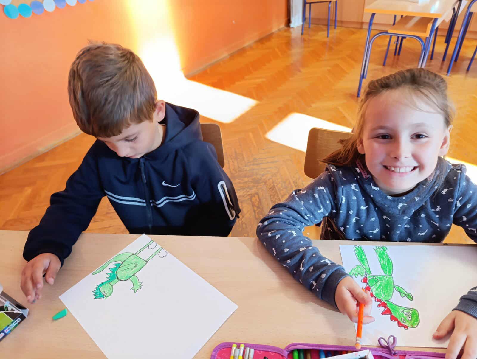 Posebnost ove aktivnosti bila je povezanost sa zavičajnim projektom o dinosaurima, temom koja je prvašiće iznimno zainteresirala. Učenici su, spajajući ove dvije ideje, osmišljavali originalne čestitke na kojima se mogu vidjeti i dinosauri koji „šetaju“ našim ulicama, donose tortu i darove gradu te zajedno s nama slave njegov rođendan. Na taj su način učenici kroz igru i likovni izraz pokazali kako se maštom može spojiti prošlost i sadašnjost – dinosauri i naš grad!