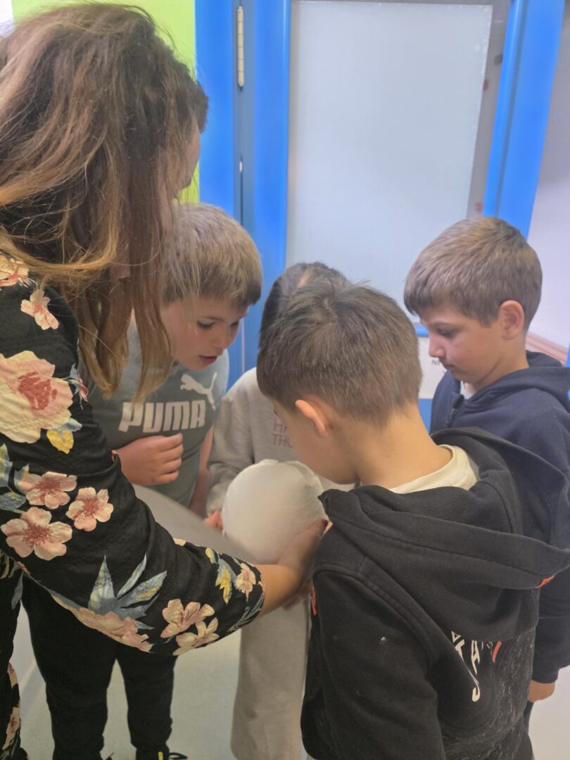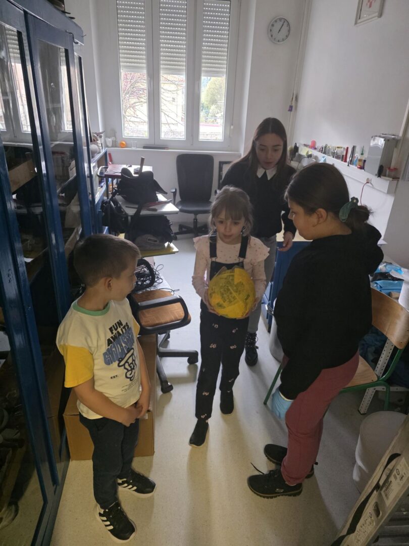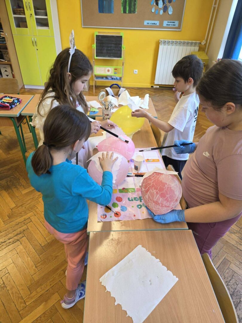 Učenici razredne nastave su na Produženom boravku obilježili Uskrs tako da su ga povezali s projektom zavičajne nastave „Raša – dom dinosaura“. Vrijedni su učenici prvo izradili velika jaja od kaširanog papira koje su zatim oblikovali škarama tako da izgledaju kao da se iz njih nedavno rodio mali dinosaur, nakon čega su ih učiteljice potajno napunile slatkišima. Učenici su u grupama rješavali križaljke s uskrsnim pojmovima koje su ih dovele do anagrama, a anagrami do slatkiša kojima su se potom počastili.
